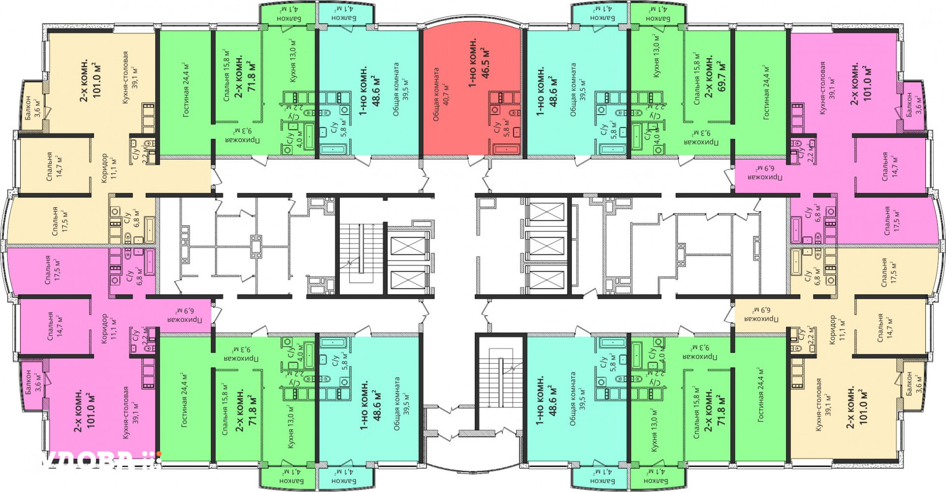24 этажа + технический этаж.